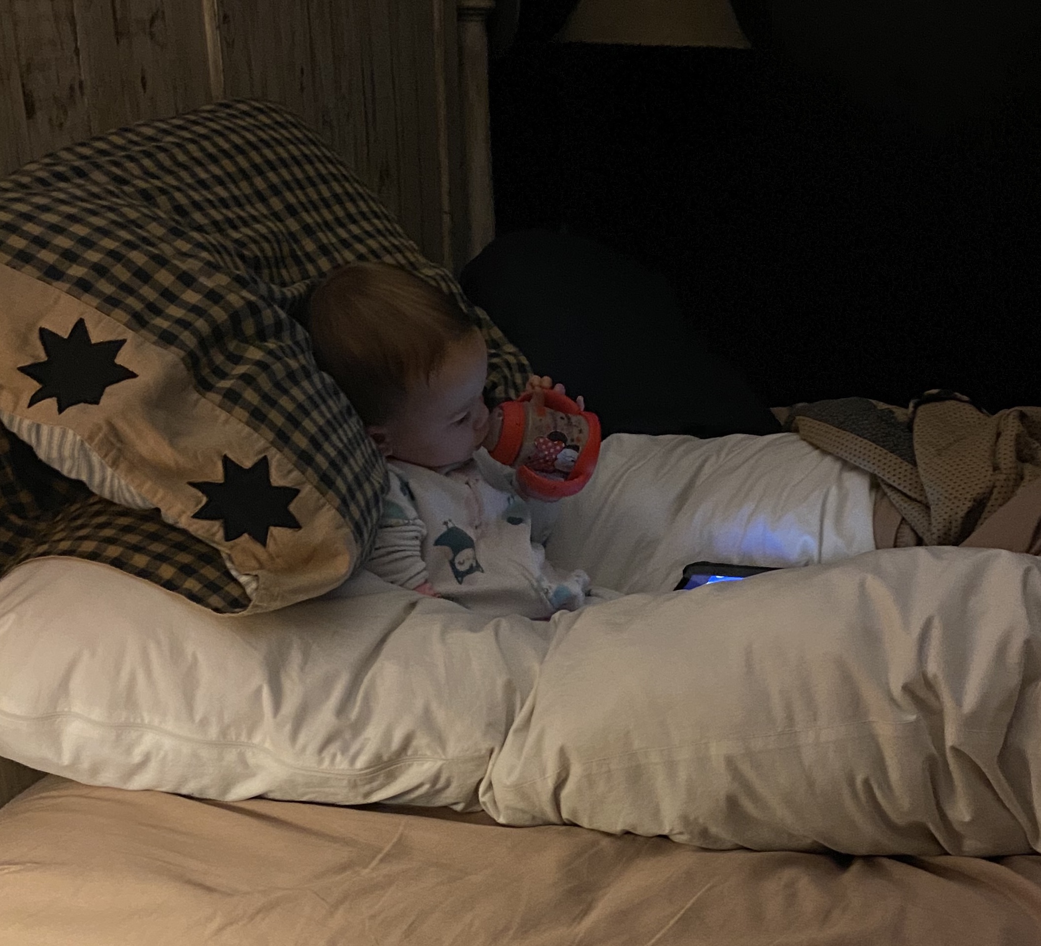 I get a ding ding alert on my phone and it’s a morning pic of my Sweet Laurel. She is nestled in the middle of mommie’s and daddie’s bed, watching the iPad drinking her chocolate milk. Mommy says “she is sweet once she gets her chocolate milk”. Sweet Laurel at the sweet age of 18 months wakes up, and she must get her chocolate milk to be sweet? Ummmmmmm. She might be onto something.